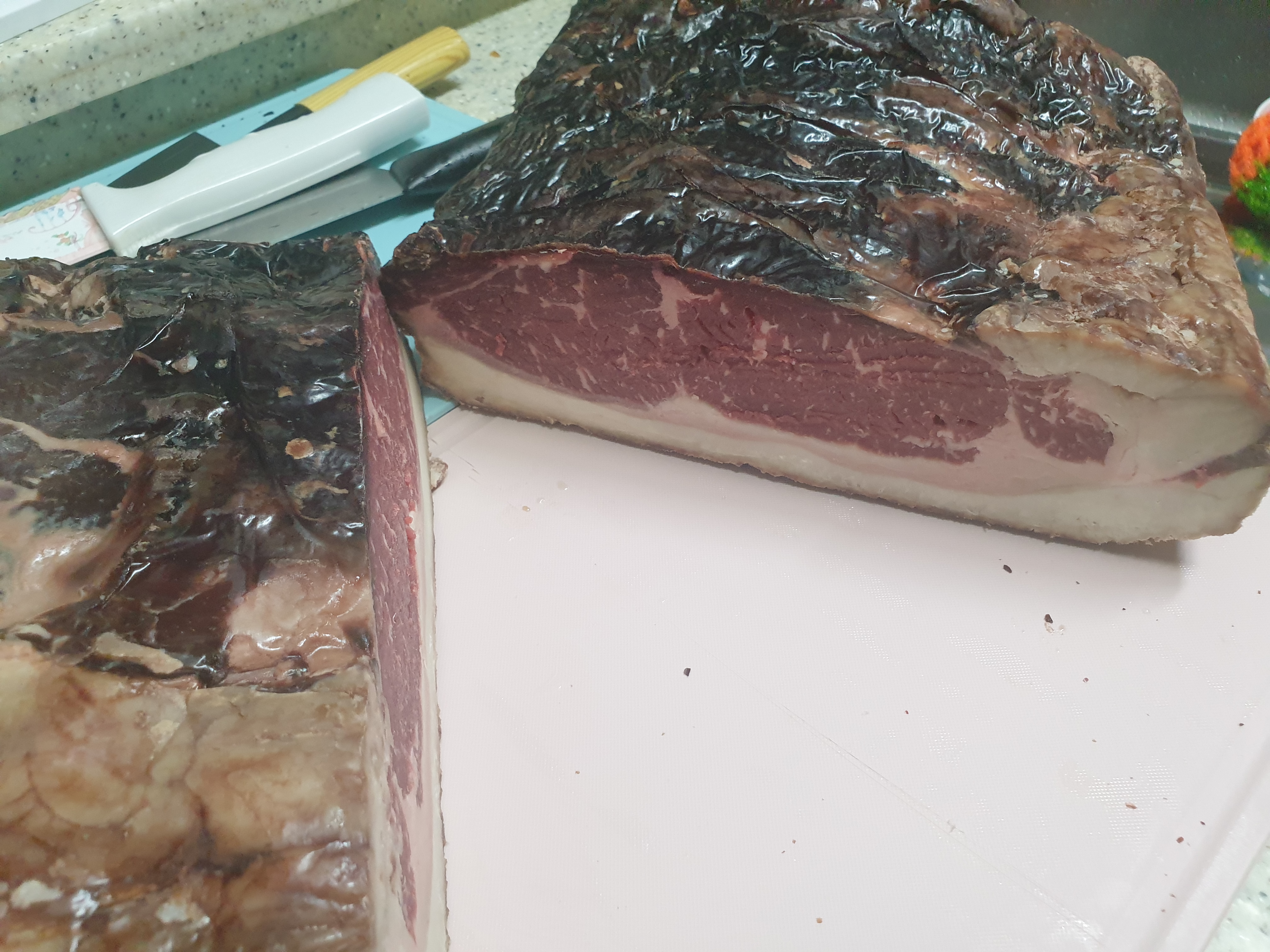 표면의 지방층이 수분이 증발하여 생각 이상으로 칼이 안들어 가요